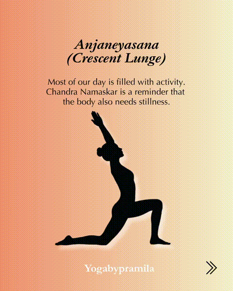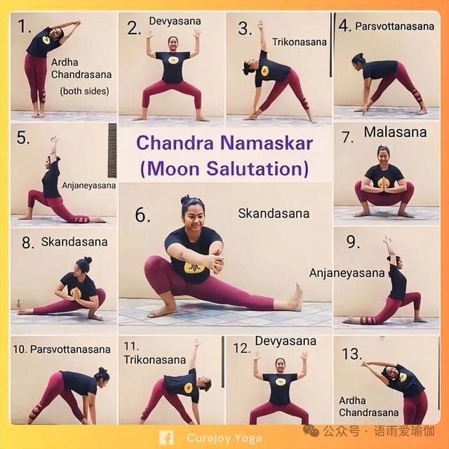 像拜日式相通,拜月式也有许多不同的版块。不才面的版块中,咱们濒临垫子的长边,先向右迁徙,然后向降级徙。