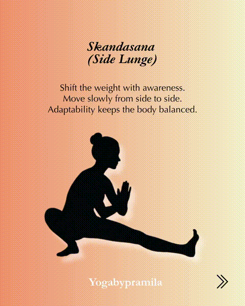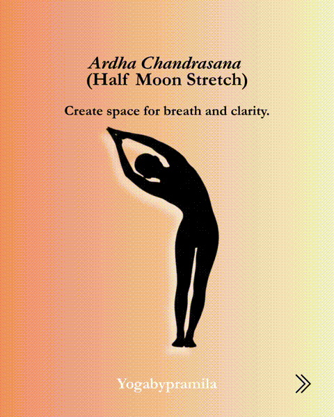立正眉月式:呼气,向右侧盘曲。吸气到中间,呼气,向左盘曲。吸气回到中心。