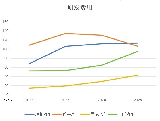 蔚来汽车研发用度106.05亿元,较2024年的130.37亿元削减18.6%,为其历史上初度压缩研发开支。